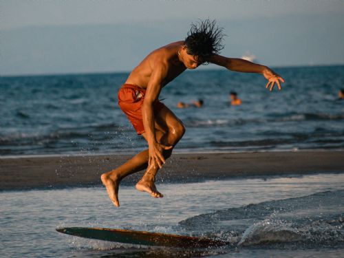 - Skilled skimboarders